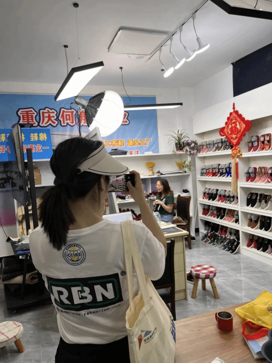 何财明说“农村电商是打破地域条件的重要手段,更是为特色家乡产品流通架设的新平台。”在何先生的带领下,发展成就观察团的队长吴嘉怡和队员黄文涵深入进入到了何航鞋业的电子商务基地,主播们亲自向我们讲解展示了何航布鞋是如何将浓厚的“巫文化”与现代工业相融合,并且通过车间制作将餐桌上的美味也变成了养家护脚原创产品即丝瓜络布鞋。