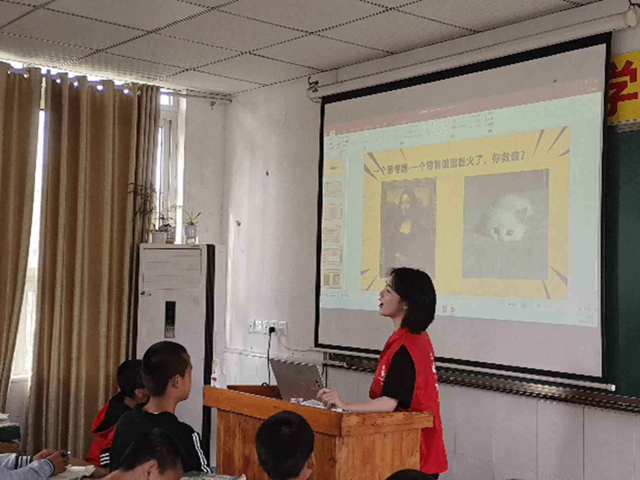 最后,志愿者在小剧场中带领同学们了解剪纸艺术,. 剪纸艺术是最古老的中国民间艺术之一,作为一种镂空艺术,它能给人以视觉上以透空的感觉和艺术享受。这也是志愿者希望同学们自己去发展自己的兴趣爱好,学习剪纸艺术,能够剪出好看物品,同时“剪”出自己的理想人生,点燃自己的青春,奔向美好的未来。