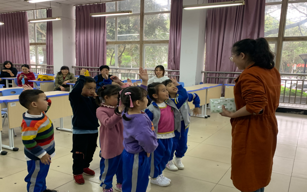 经过第一个游戏“说相反”的热场,小朋友们对于第二个游戏的积极性更高了,课堂也充满了欢声笑语,在做游戏的过程中志愿者们和小朋友们的关系也逐渐拉近!