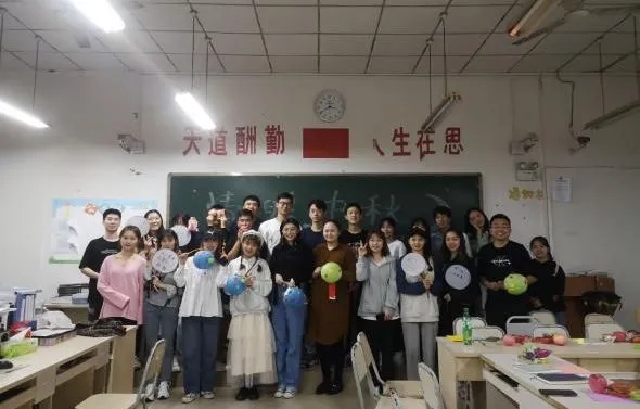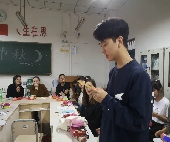 说到中秋节,我们就自然地想到:“但愿人长久,千里共婵娟”这样的娴静而美好的千古名句。而我们的第一个环节就是让每位同学抽取一张贺卡并写下自己心中的祝福。同学们拿着笔认真的写下自己对家人、朋友、老师的祝福以及对未来的美好期待。