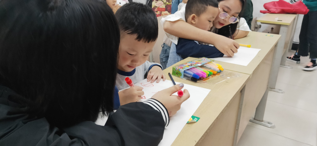 姐姐们陪着小朋友们完成了一幅幅绘画作品