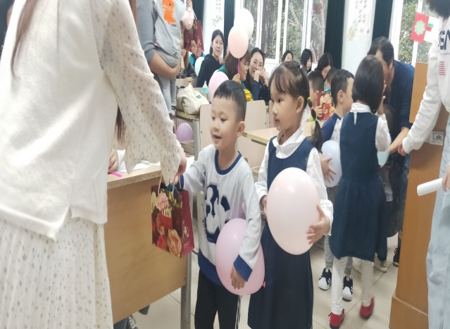 家长带着小朋友们一起玩“击鼓传花”