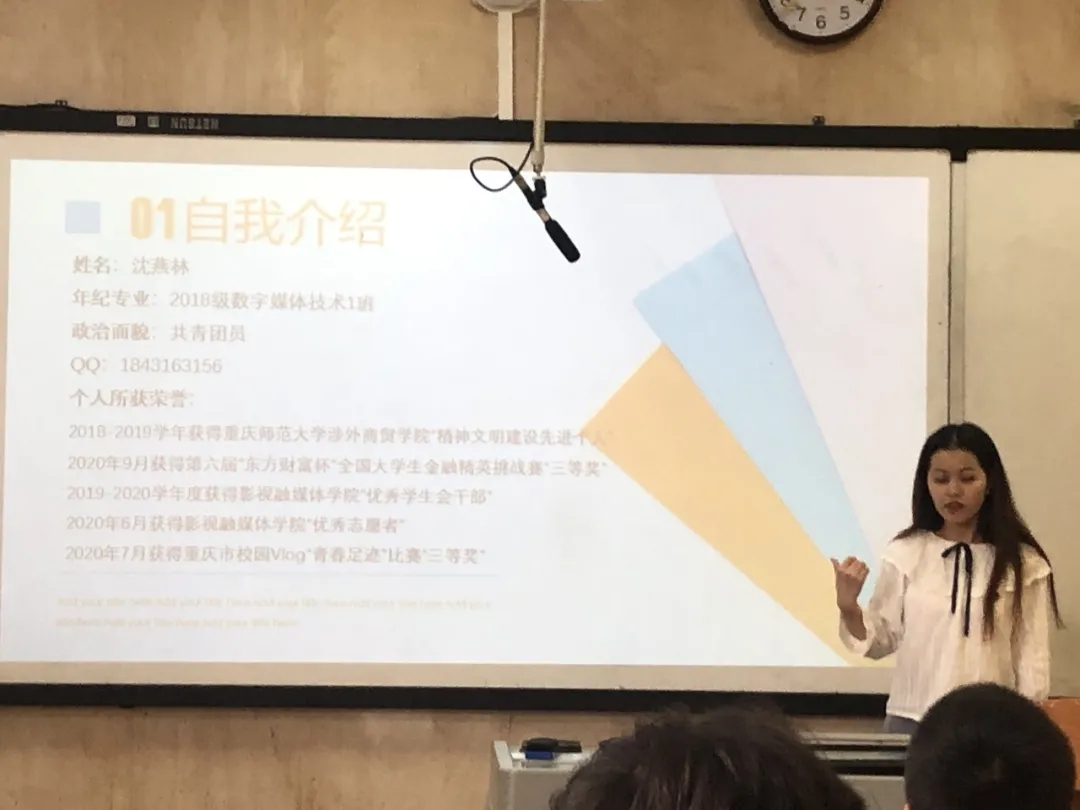 竞演同学成熟冷静,优雅大方。通过精美的PPT图文和流畅的语言表达,将自己的优势长处,工作经历以及日后工作规划展现出来。评委老师和同学也根据演讲者自身不同情况,进行了提问和建议,帮助他们弥补自己的不足,完善自己的工作。