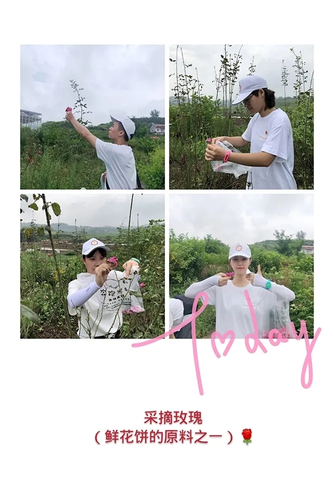 在参观玫瑰园的过程中,工作人员向我们介绍了玫瑰园并且带领队员们进行了玫瑰花的采摘工作,为之后制作玫瑰鲜花饼做准备。