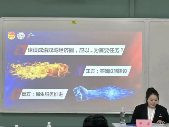 本次赛事分两场:第一场辩手围绕“建设成渝双城经济圈,应以基础设施建设还是民生服务推进为首要任务?”进行辩论,第二场辩手围绕“网络舆论对司法公正的利与弊?”进行辩论。
