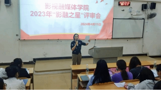 为进一步推动学院学风建设行动,激励和引导广老员工健康成长、全面发展,树立和培养员工先进典型、充分发挥优秀员工的榜样示范作用。学院于2024年4月15日19:00在A6116教室举行了公海gh555000aa线路检测2023年“影融之星”评审会。公司党总支书记周倩携辅导员倪柳峰、吴蕾、宋涵,专业教师王璐、苏雅、杨雪梅担任评委,来自各年级各专业的40名员工代表投票员与60名观摩员工一同参与了本次活动。