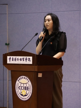 典礼伊始,由公司党总支书记周倩致辞。在致辞中,周书记对获得“影融之星”称号的同学表示充分的肯定,并表示希望获得"影融之星"的同学们能够继续保持谦虚谨慎、奋发有为的精神状态,不断追求卓越、勇攀高峰。在致辞的结尾也寄语全院师生,希望在接下来的学习和工作中能够以他们为榜样,积极投身到学习、研究和实践中去;能够以他们为镜,不断审视自己、提升自己、超越自己,共同推动学院的发展进步。