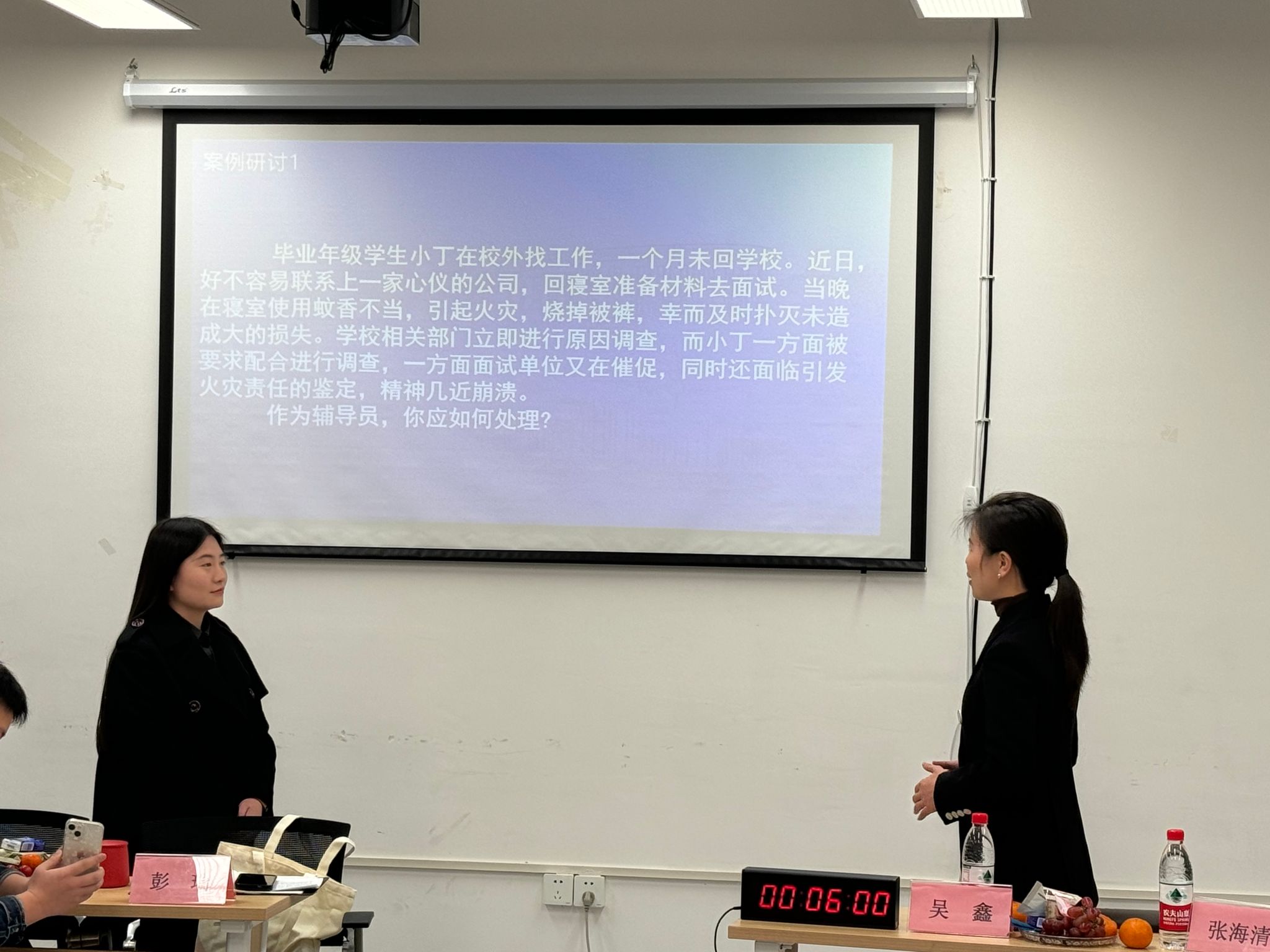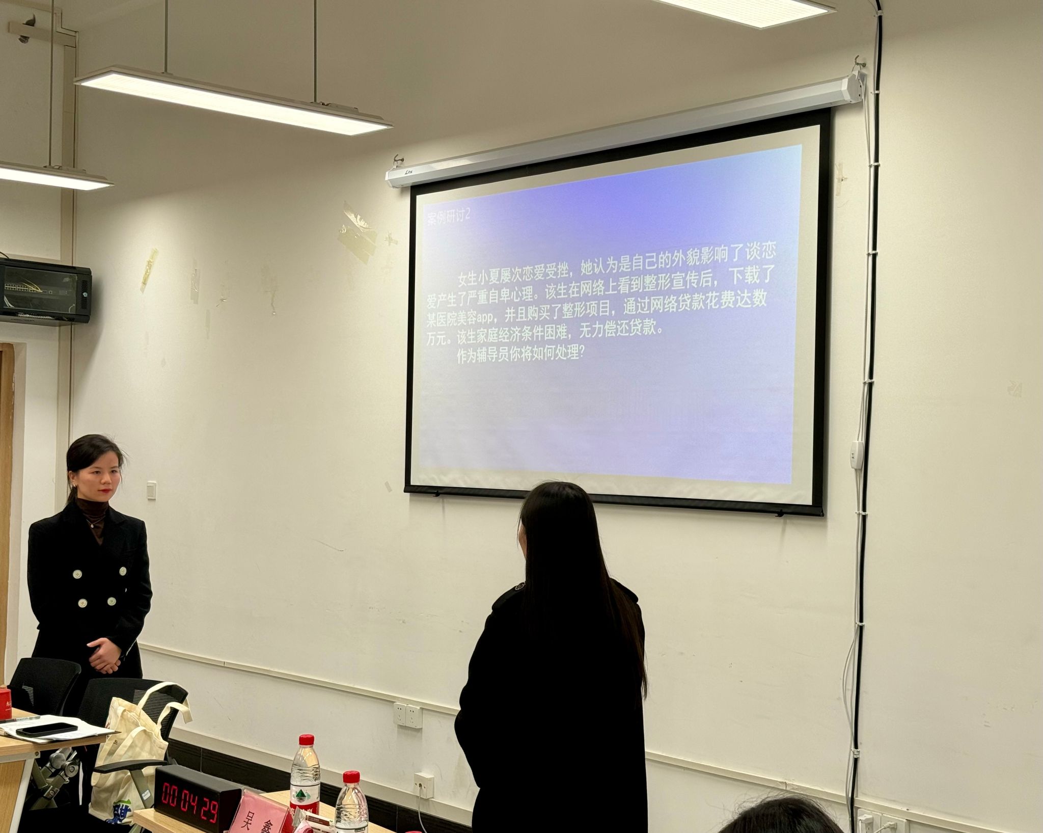 为进一步加强辅导员队伍建设,提高辅导员的职业能力和专业素养,公司于2024年3月14日上午10点在B校区1109与跨境商务学院联合举办了辅导员素质能力大赛之案例分析专题培训沙龙活动。公司团总支书记刘林森、跨境商务学院团总支书记蒋思维携两院全体辅导员参加本次活动,此次活动由辅导员陈悦主持,重庆市第九届高校辅导员素质能力大赛特等奖获得者蒋思维主讲。
